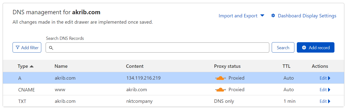 Add below mentioned records in your DNS setting of domain,then wait for 5 minutes and enter your custom domain in above box and click update custom domain button.